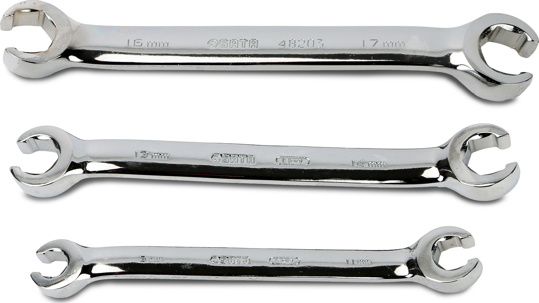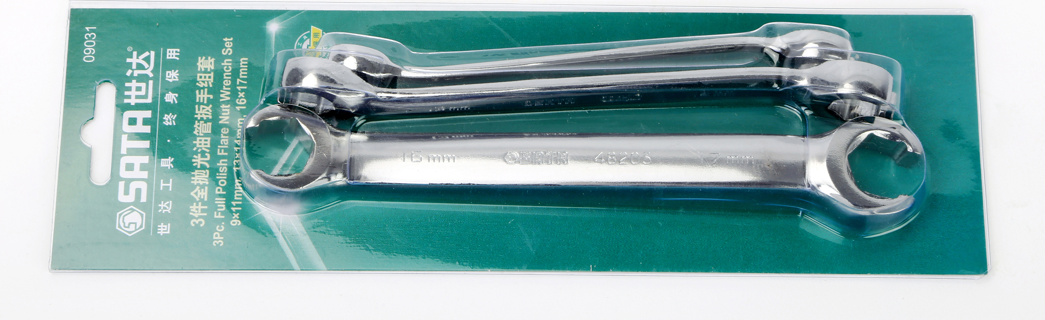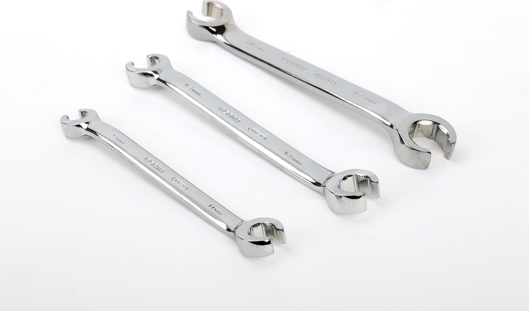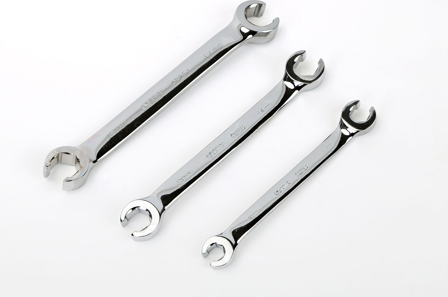 3-piece full polish flare nut wrench set (9 x 11MM, 13 x 14MM, 16 x 17MM)