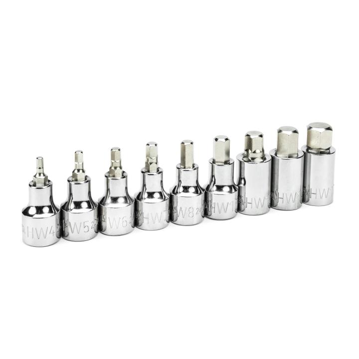SATA, 9 Pc. 1/2″ Drive Hex Bit Socket Set (4 – 17 mm)