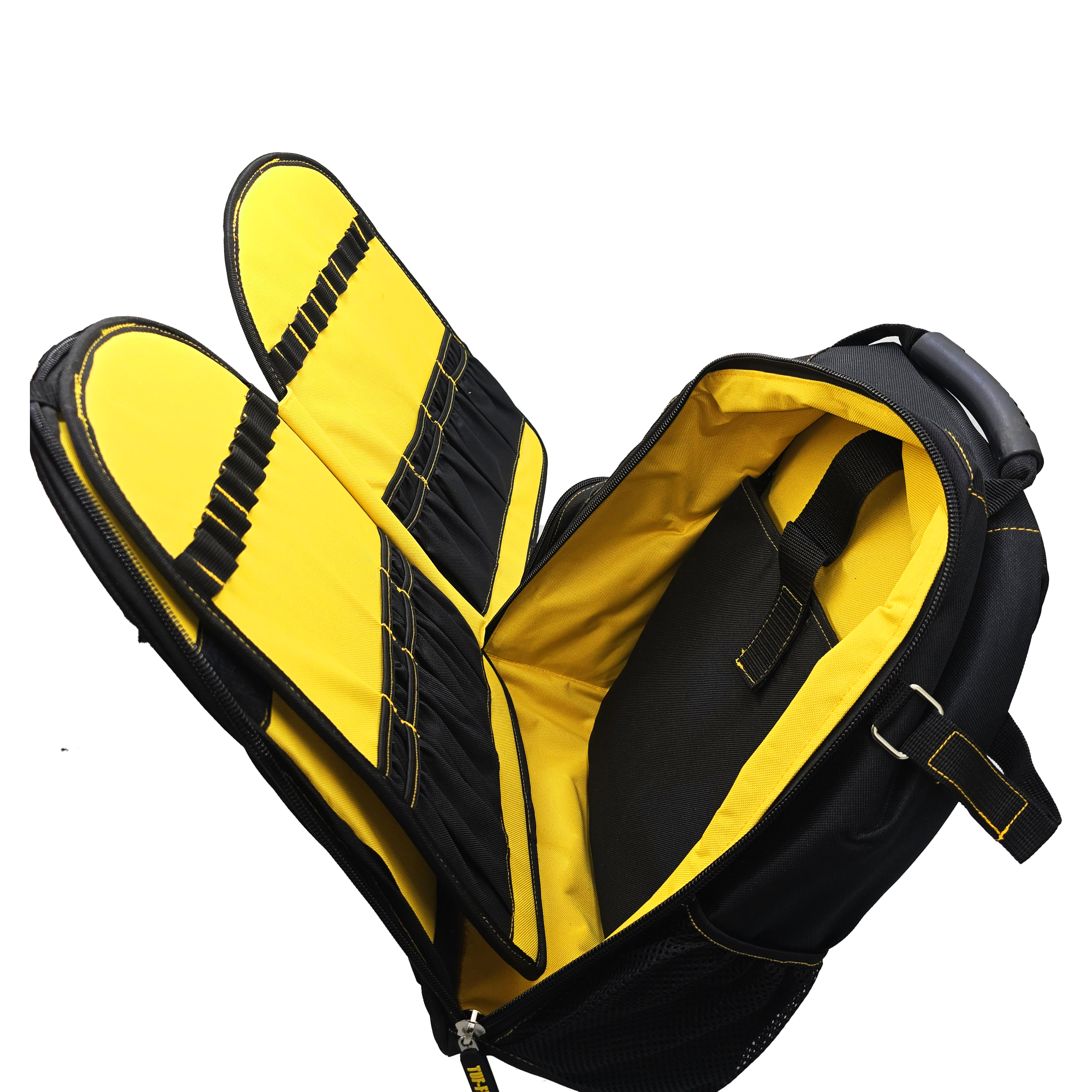 Large inner compartment for carrying hand tools and power tools Large storage divider for organizing the tools Back support system padding for comfortably transporting the tools with less fatigue.