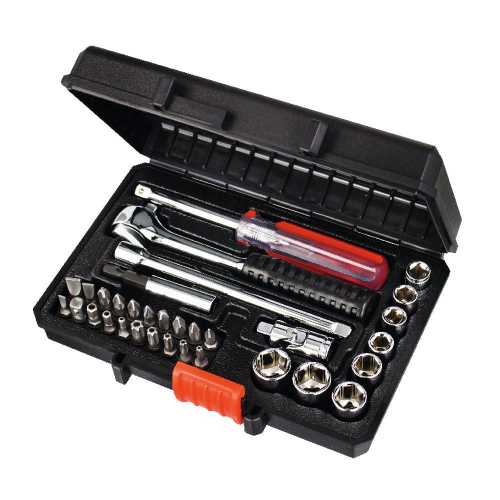 This set has everything that you may need for any repairs in full portable mode. From breakdowns on the road or damages in the household. Useful in car when the nearest gas station or service is more than a dozen kilometers, an exceptional portable tool kit is always needed at hand to fill the requirements of most essential tools. The kit includes A7142-XJ hex head screwdriver attachments and adapters for manual screwdriver and a ratchet spanner.