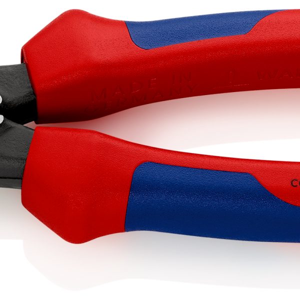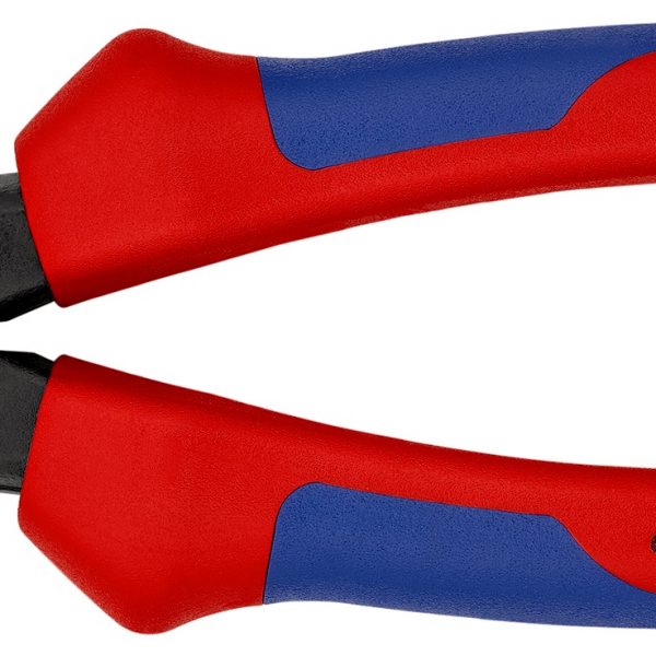 Cutting capacity up to 48 HRC hardness. Robust cutting edges are additionally induction-hardened, cutting edge hardness approx. 62 HRC. Forged-in stopper with comfortable shock- absorber. Good access due to very flat construction of head and joint area. Ergonomically angled handles to minimise effort. Sturdy non-slip two-colour dual component handle sleeves. Precise adjustment (12 positions) by eccentric bolt. High cutting performance with minimum effort due to optimum co-ordination of the cutting edge angle and transmission ratio. Bolted cutter head, replaceable. Joint: special tool steel, forged. Handles: steel tube, powder-coated. Blade: chrome vanadium heavy-duty steel, forged, multi stage oil-hardened.