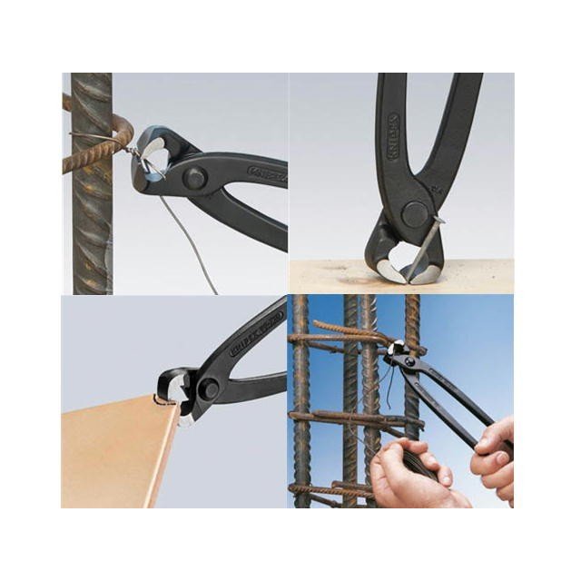 To twist and cut wire in one operation: fast, reliable and economical. Unobtained precision and long service life make these the most widely purchased concreters´ nippers in the world. Cutting edges with additional hardness- cutting edge hardness approx. 61 HRC. High-grade special tool steel- forged, oil-hardened.