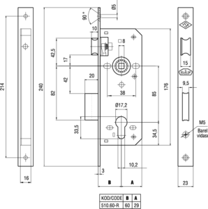 510.60R-X-ST MORTISE LOCK CYMETRIC CYLINDER 68MM WITH BALL BEARING SATIN PLATED