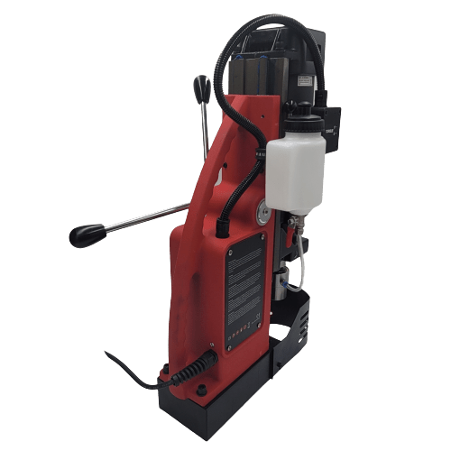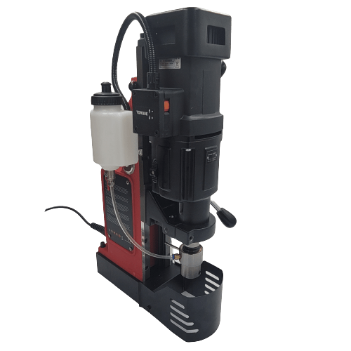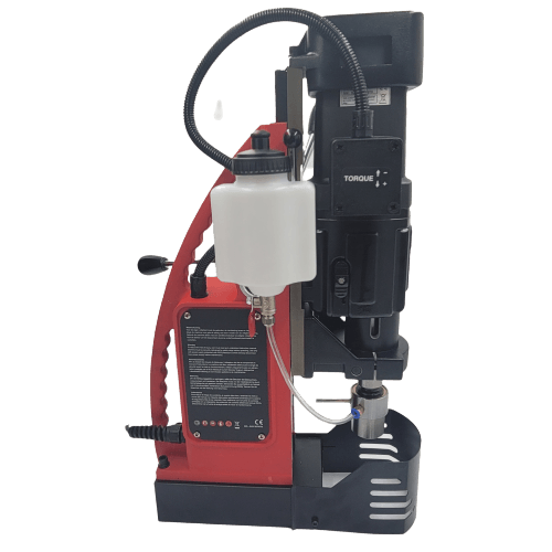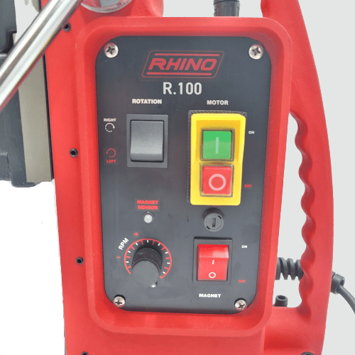 The RHINO R.100 magnetic core drilling machine cuts holes up to 100 mm and is particularly suitable for tapping. This magnetic core drilling machine has an extremely powerful 1800 W motor with a four-speed gearbox. The R.100 drilling machine benefits from a right/left rotating functionality and electronic speed adjustment.