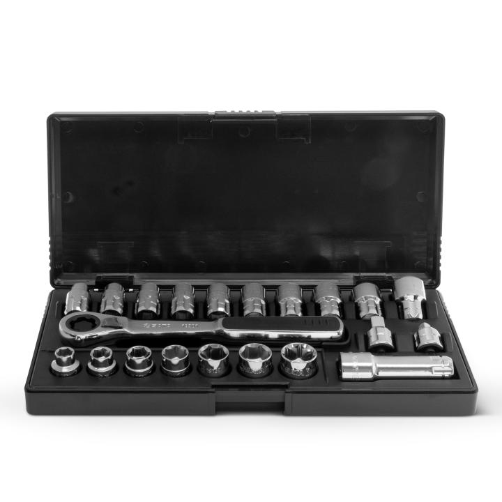 Be the first to review “SATA, 21 PC. 3/8” 6PT MET/SAE PA-THRU SKT SET”