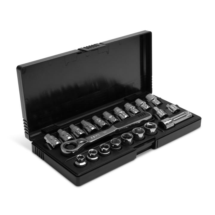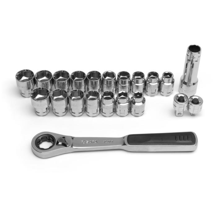 SATA, 21 PC. 3/8” 6PT MET/SAE PA-THRU SKT SET