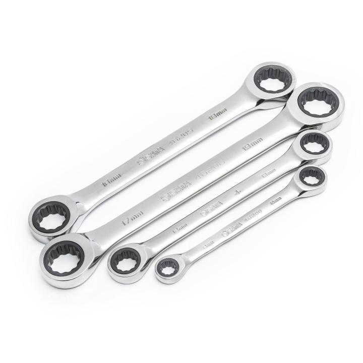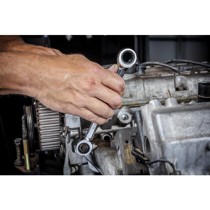 Ratcheting box end needs as little as 5° to remove fasteners