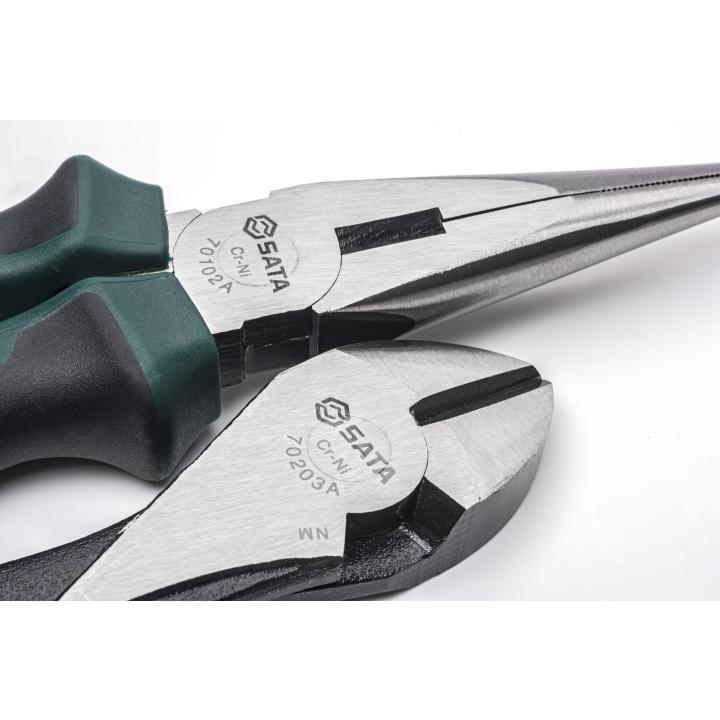 At SATA, we believe that everyone has the power of change in their hands. That’s why we make powerful pairs of pliers, available in sets or open stock. We have specially designed long needle-nose pliers for jewelers, small insulated pliers for electricians, heavy-duty adjustable linesman pliers for trades professionals and many more. It doesn’t matter if you’re cutting, gripping, crimping or stripping wire, making flush cuts or diagonal cuts; a quality pair of pliers fits comfortably in your hand, saving you strain and effort. We make precision extra-long pliers for working safely with wire, and flat or bent nose pliers for use in aviation, automotive or industrial projects. Feel the power of change for yourself with a pair of SATA pliers in your hand.