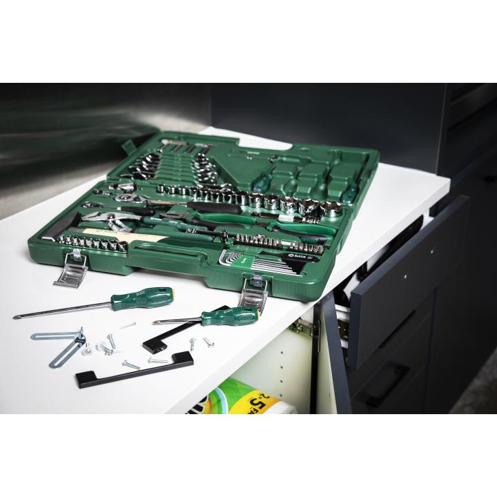 SATA makes mechanic’s tool sets for the best doers in the world. For men and women, tradespeople who want a full tool set with professional performance features. The uses for these master tool kits extend beyond the auto shop, with universal basic sets for the homeowner or DIY weekend warrior. Small sets are perfect for travelling, with hard storage cases and portable designs. For the true professional, we have full box sets containing a complete assortment of wrenches, sockets, pliers, screwdrivers, hex keys and more. These sets cover popular SAE and metric sizes, with the strength to get the job done and durability to not budge an inch. Miniature sets fit in your car or home, while a full universal set sets you up to do your best work on the job. Let your work do the talking, with SATA mechanic’s tool sets.