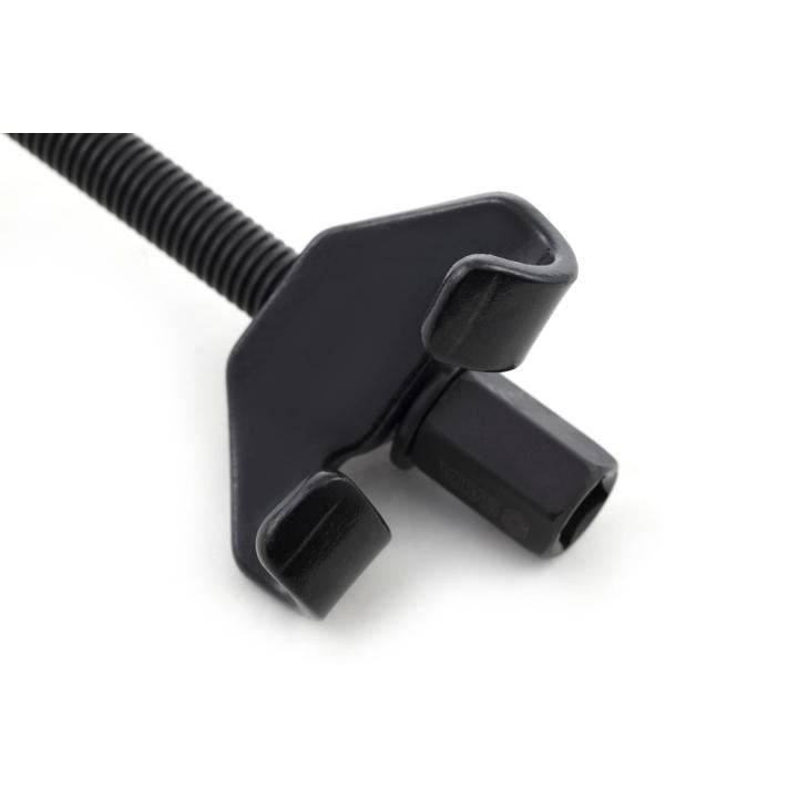 FEATURES Reinforced screw thread design to ensure safety Suitable for use where space under wheel arch is limited Works with 1/2″ drive tools or with 21mm socket and wrench Forged steel jaws for extended tool life