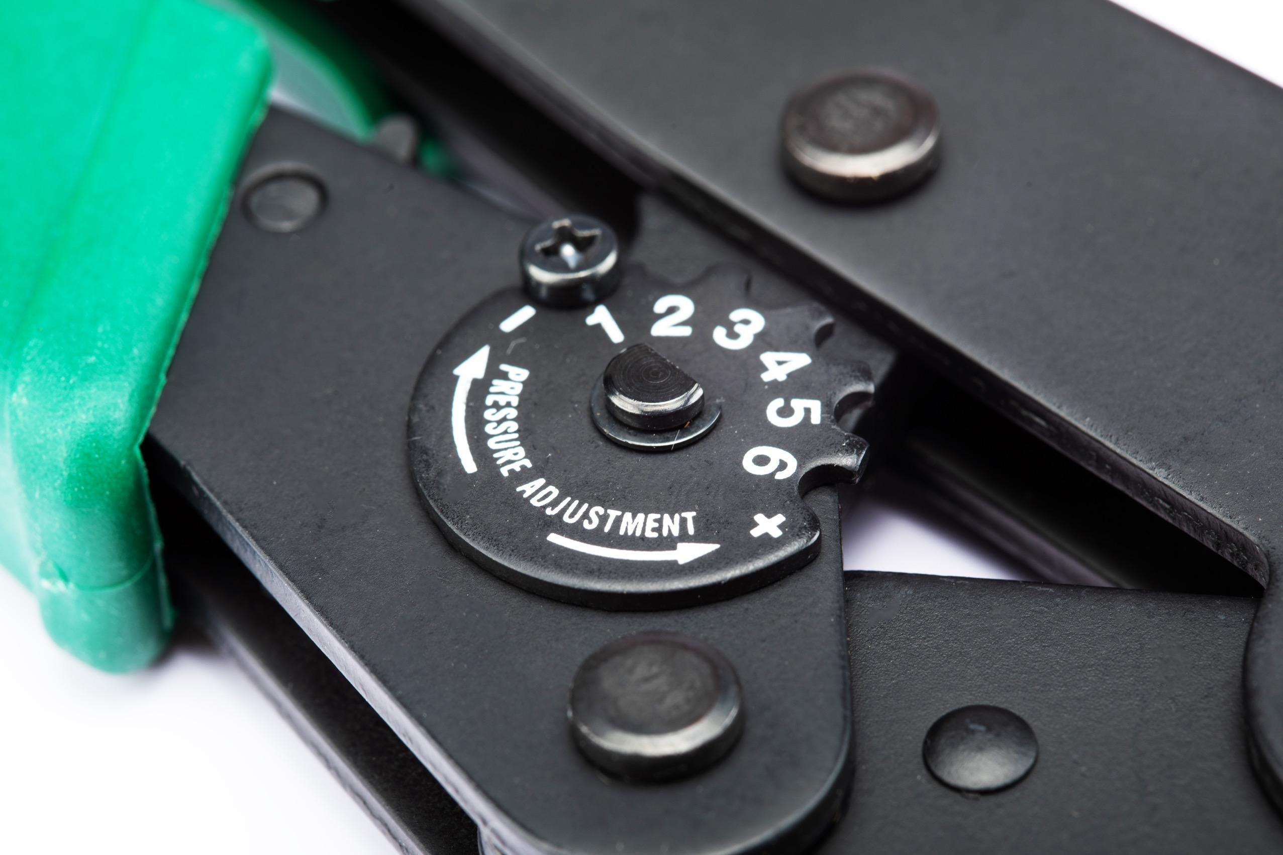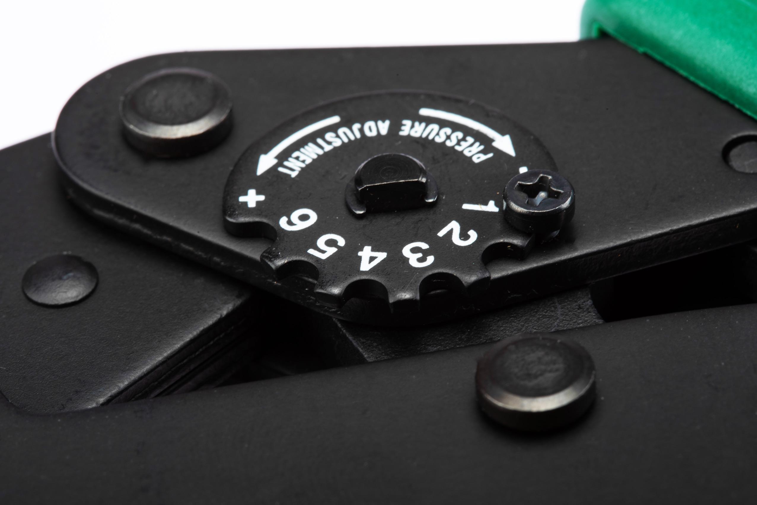 Pressure adjustment button design, ensuring use of all kinds of terminals; unique design of jaw opening by pressing handle