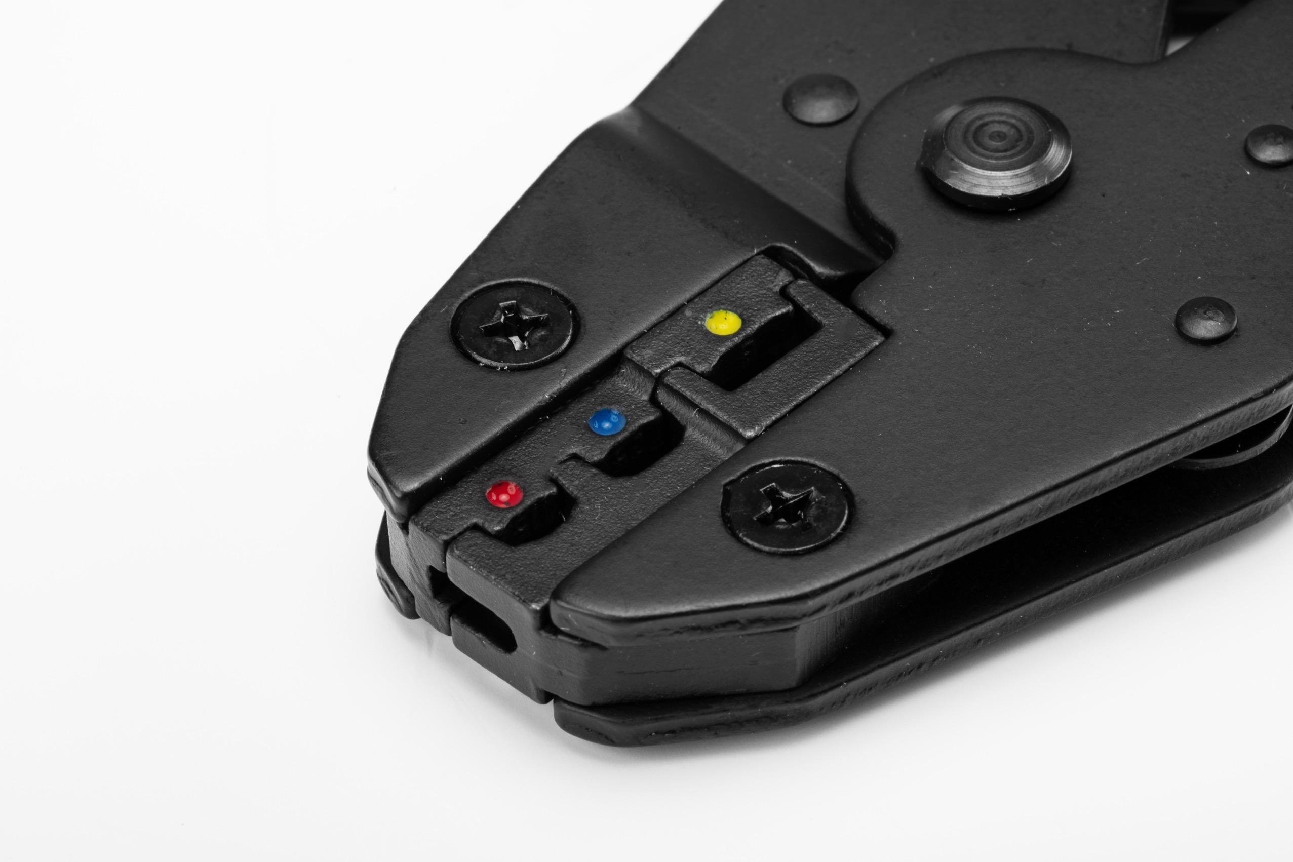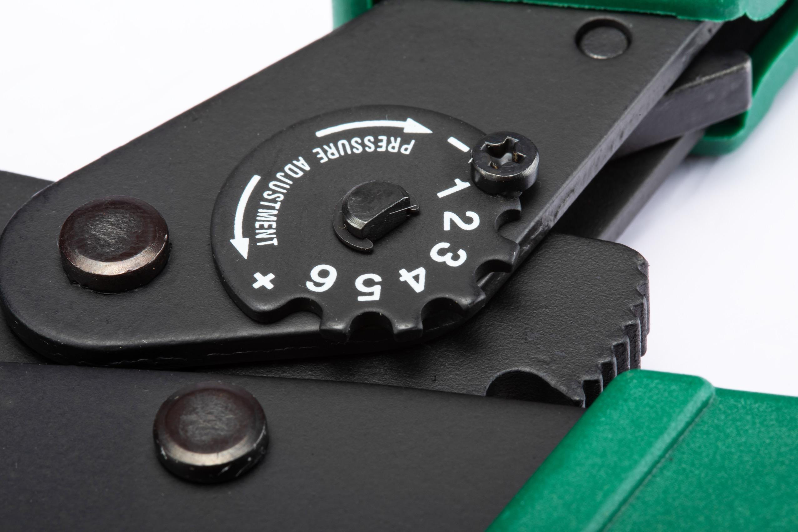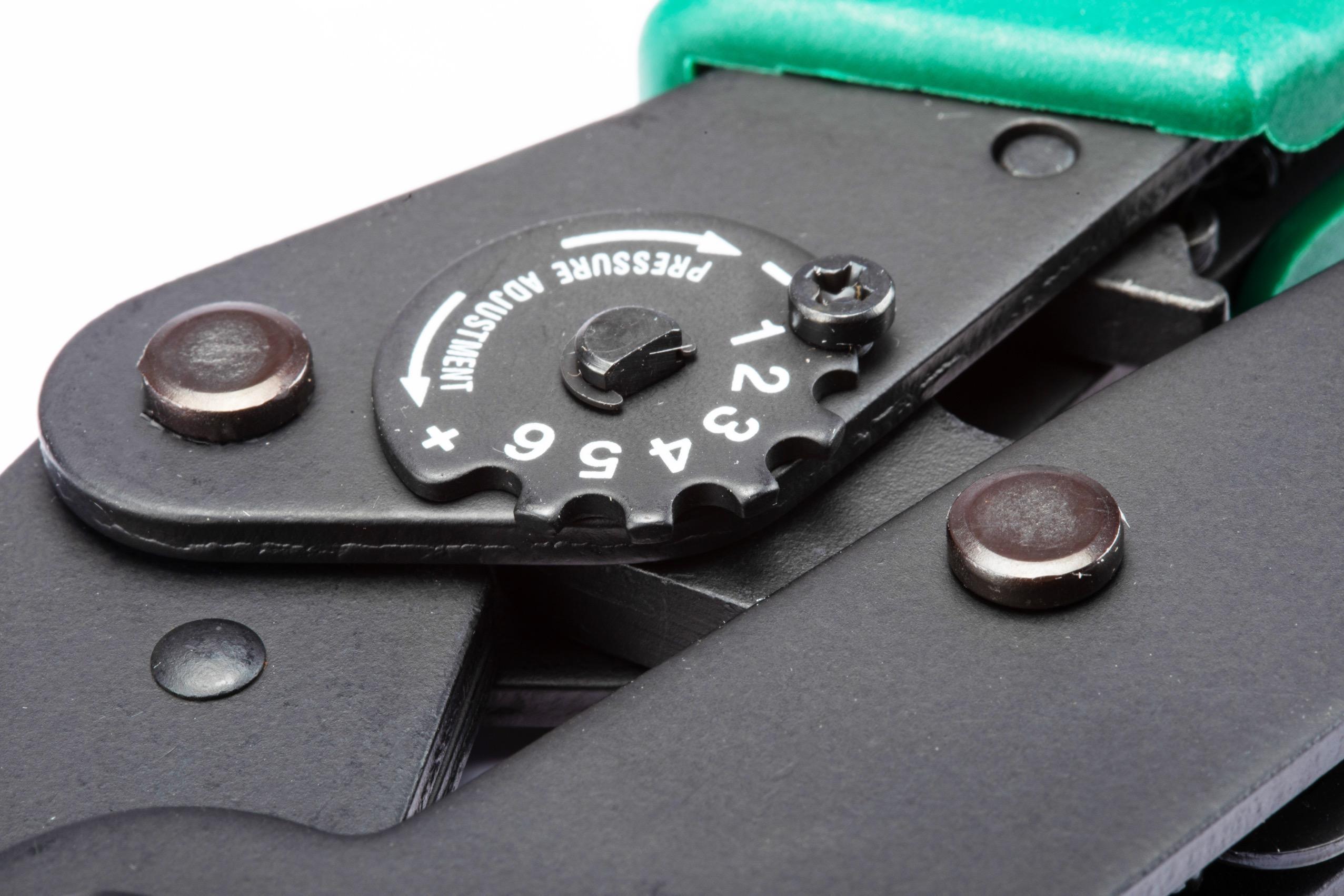 Pressure adjustment button design, ensuring use of all kinds of terminals; unique design of jaw opening by pressing handle
