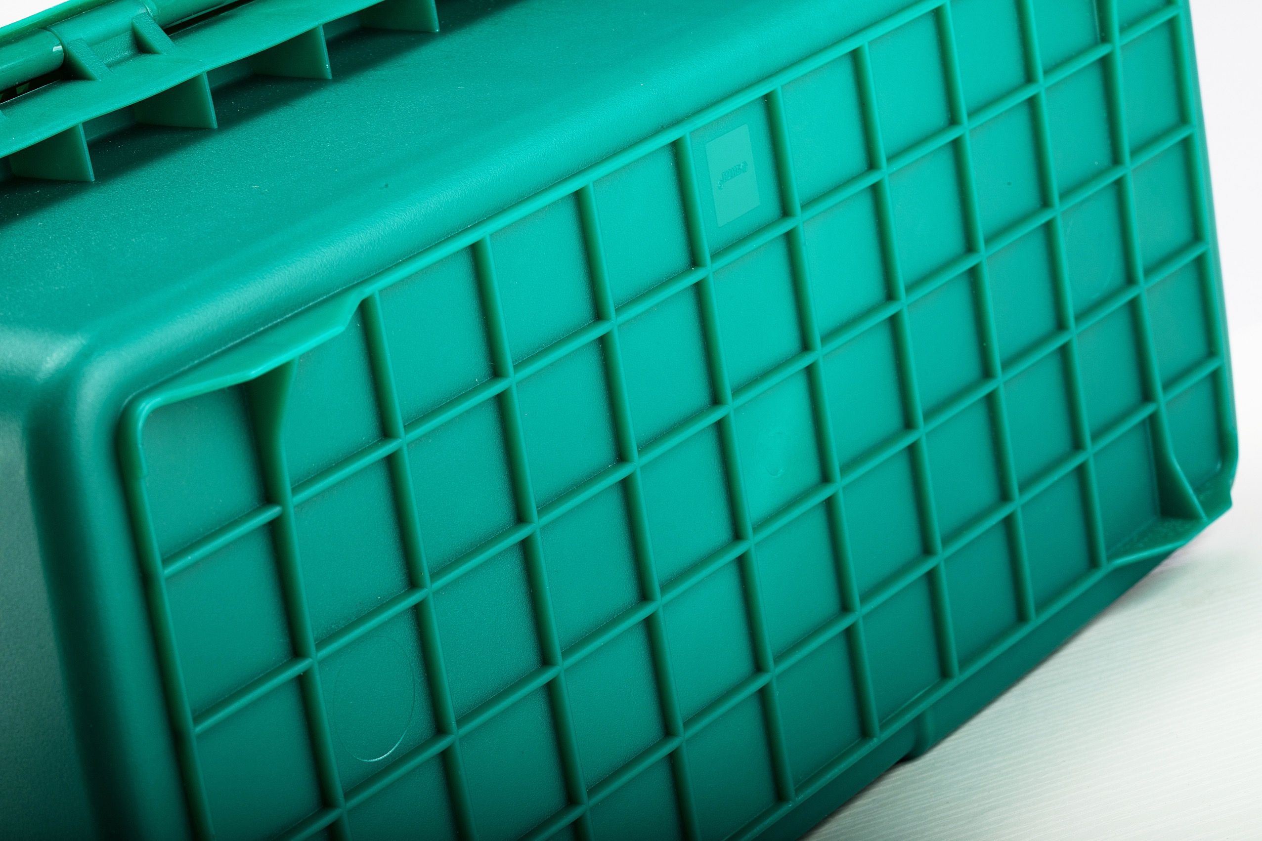 Box made of reinforced PP material including fiber resin, ensuring high strength and impact resistance
