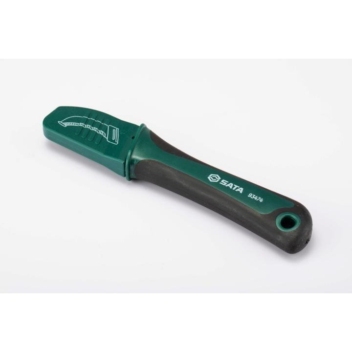 Scythe hook blade with sliding guard on cutting tip ensures blade will not damage inner core of the wire